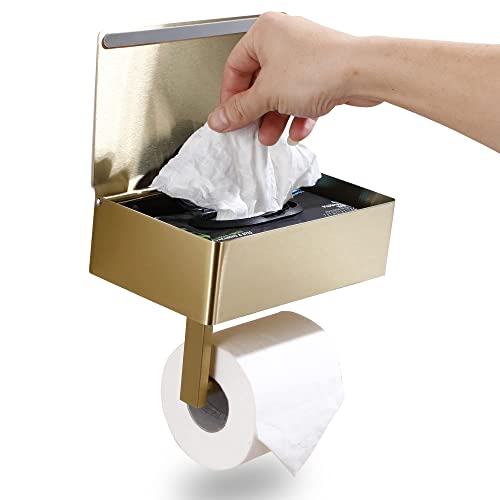 Day Moon Designs Toilet Paper Holder with Shelf - Flushable Wipes Dispenser & Storage Fits Any Bathroom Keep Your Wet Wipes Hidden - Stainless Steel Wall Mount Bathroom Organizer - Gold Large Price in USA