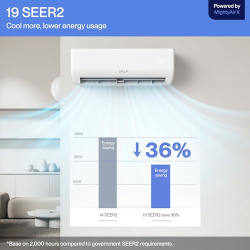 DELLA 10000 BTU Energy Saving Window Air Conditioner Work with Alexa Cools Up to 450 Sq. Ft GEO Location AC Unit with WIFI Smart Controls Remote Dehumidifier Fan Reusable Filter Easy Install