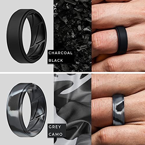 ThunderFit Silicone Wedding Rings for Men Airflow Inner Grooves - 8mm wide - 2mm Thick (AW-Black AW-MidnightBlue AW-Burgundy Grey Camo - Size 5.5-6 (16.5mm))