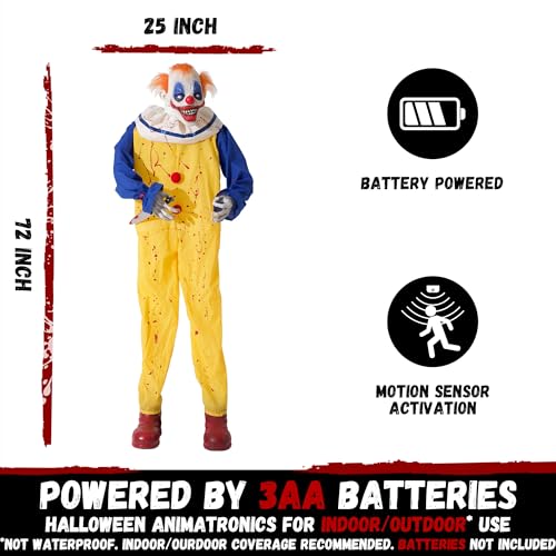 Halloween Animatronic 6ft Killer Clown Decorations 72inch An...