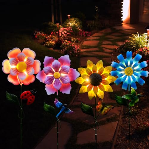 Solar Garden Stakes Lights for Outdoor Decor 4 Pack Waterpro...