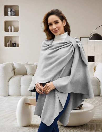 Womens Pullover Poncho Sweater Cashmere Feel Shawl Loose Fitting Ponchos Wraps Baggy Tops for Fall Winter
