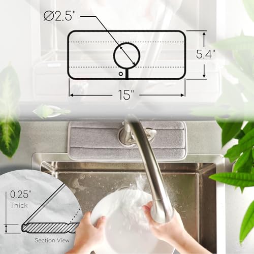 Ternal Sinkmat for Kitchen Faucet Original Design Absorbent Microfiber Fabric Machine Washable Splash Guard & Drip Catcher For Around Faucet Handle [Grey Standard 1 Pack]
