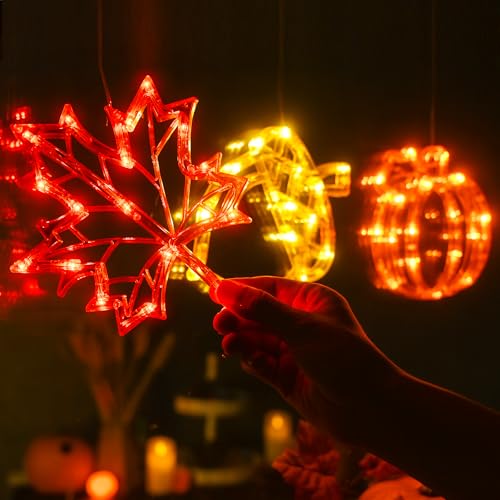 LOLStar Thanksgiving Decorations Fall Window Lights with Suc...