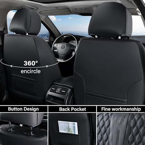 COVERADO LUXURY LEATHER CAR SEAT COVERS NEW REALEASE FEATURES: 1. Crafted from porous Nappa leather and durable faux leather these seat covers adds modern style and great comfort for your driving. 2. Each seat covers are made precisely and well stitching compatible with airbag and seatbelt sockets. The pockets on the back can increase the storage place. Fit Vehicles Like(for Reference) Fit Acura: Integra Fit Audi: A3 A4 A5 A6 A7 A8 Q5 Q7 Fit BMW: Series 1 Series 2 Series 3 Series 4 Series 5 Series 6 Series 7 Series 8 Mini Cooper X1 X3 X4 X5 X6 Fit Buick: Electra Regal Encore LaCrosse Enclave Envision Fit Chevrolet: SSR Fit Chevrolet: SSR Cavalier Malibu Equinox Traverse Caprice Impala Fit Cadillac: CTS SRX Fit Chrysler : 300 Town & Country Fit Dodge: Charger Durango Journey Fit Ford: Fiesta Focus Escape Fusion Mustang Edge Explorer Fit Honda: City Civic CR-V Pilot Fit Hummer:H2 H3 Fit Hyundai: Elantra Fit Jeep: Cherokee Compass Grand Cher