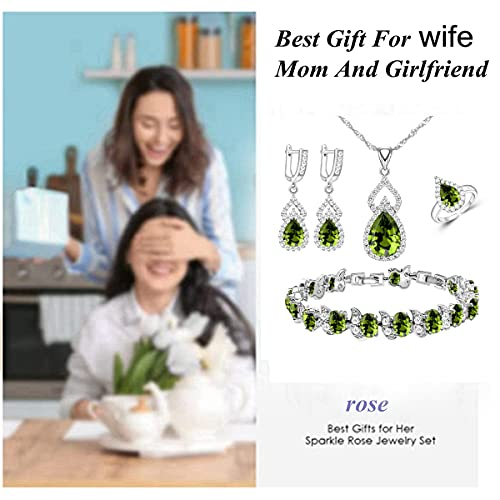 LMXXVJ Mystic Olive Green Teardrop Cubic Zirconia Jewelry Sets -White Gold Plated-Tennis Ring/Bracelet/Earrings/Pendant/Necklace Sets Pack of 5 for Women Price in USA