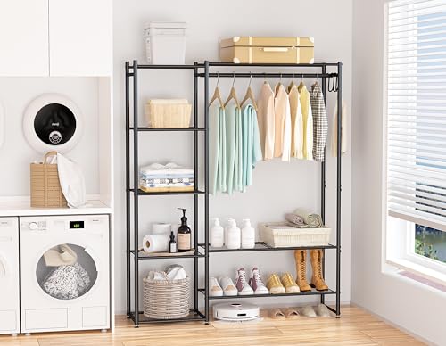 Our VIPEK Multifunction Wire Steel Closet Organizer is designed to maximize your storage space by providing shoes storage double hang storage long hang storage folded storage so that every bit of closet space is functional and fits your needs. 1. Total load capacity: 890 lbs 2. Sturdy and reliable steel construction 3. Muti-style assembly customize the storage space to your needs 4. Multifunction heavy duty clothes rack with different tier options 5. Freestanding closet system provides generous space great for bedroom laundry room clothing shop and more 6. Easy to assemble no tools needed Specifications: Material: Steel Color: White Overall Dimensions: 68.9\" L x 15.7\" W x 76.4\" H