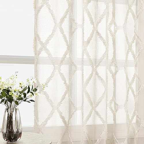 Lush Decor Linen Button Farmhouse Valance 52"" W x 18"" L Blue & White- Rustic Valance For Window - Pleated Color Block Design With Coconut Husk Button Detail Price in USA