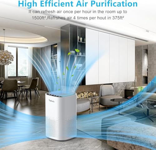 AROEVE Air Purifiers for Bedroom Home Air Purifier Air Cleaner For Smoke Pollen Dander Hair Smell Portable Air Purifier with Sleep Mode Speed Control For Bedroom Office Living Room MK01- White