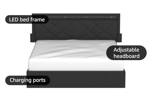 VASAGLE LED Bed Frame Queen Size 36.7/39.3 Inches with Headb...