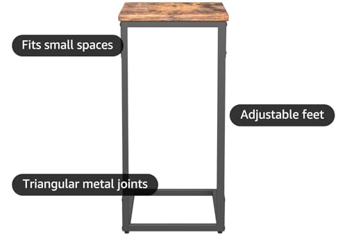 VASAGLE Brown C-Shaped Side Table with Metal Frame
