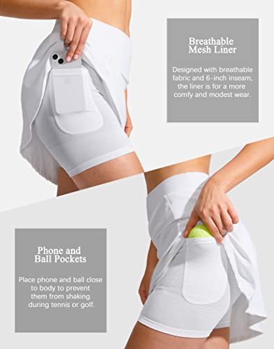 SANTINY Pleated Tennis Skirt for Women with Pockets Shorts W...