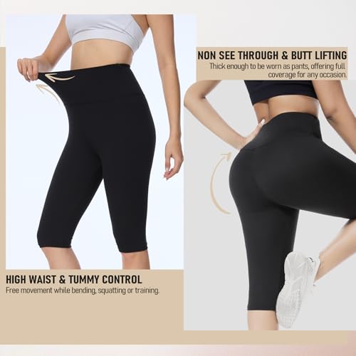 DHSO Women's Knee Length Capri Leggings – High Waisted Capri...