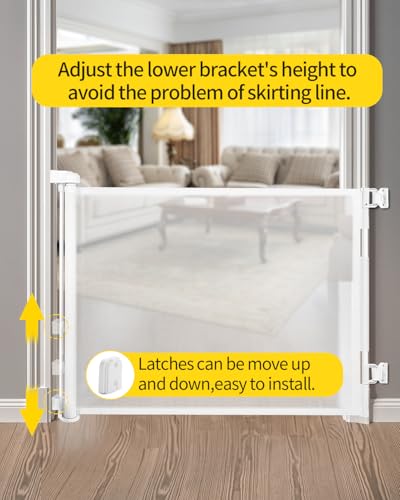 dearlomum Retractable Baby Gate Mesh Baby Gate or Mesh Dog Gate 33\" Tall Extends up to 71\" Wide Child Safety Gate for Doorways Stairs Hallways Indoor/Outdoor(White 33\"x71\")