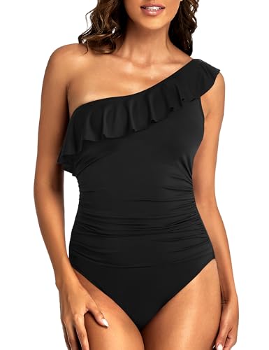 Hilor Women's One Shoulder Swimsuits Tummy Control Swimwear ...