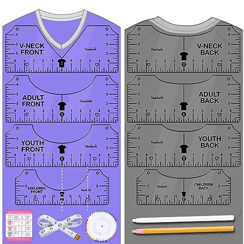9Pcs Tshirt-Ruler Guide for Vinyl Alignment Tshirt-Ruler for Heat Press Tshirt-Rulers to Center Vinyl Transparent V-Neck/Round PVC Ruler for Children Youth Adult Front and Back Measurement Price in USA