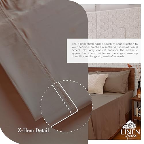 100% Cotton Percale Sheets Full Size Taupe Deep Pocket 4 Pie...