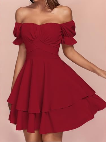 LYANER Women's Tie Back Off Shoulder Wrap Layer Ruffle Short...