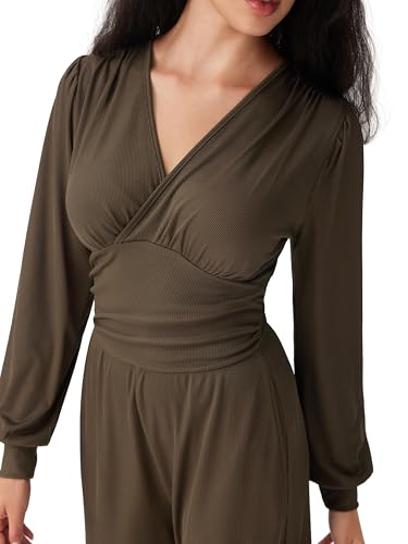 CIDER Jumpsuits for Women Long Sleeve V Neck Wide Leg Dressy...