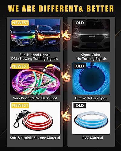 YM E-Bright RGB Hood Light Strip with Sequential Turn Signal...