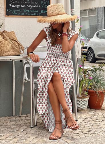 FENSACE Summer Dresses for Women 2024 Vacation Sage Green Floral Sundress(Green X-Large) Price in USA