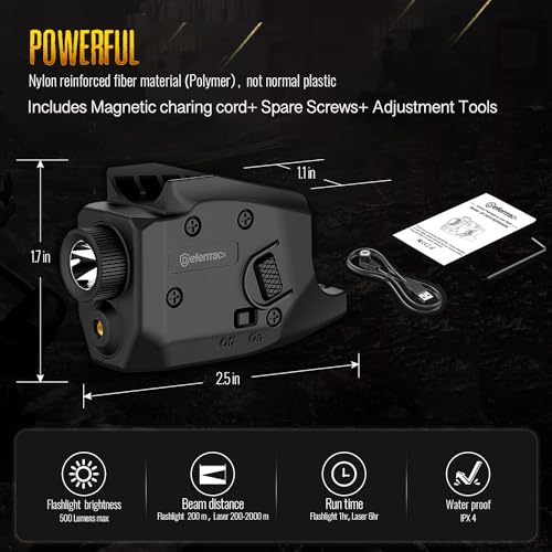 CRONHAWK 500 Lumens Tactical Weapon Flashlights Laser Sight - Rail-Mounted Light and Green Laser Light Combo for Pistol with Picatinny Rail and GL Rails - Magnetic Charging Port Price in USA