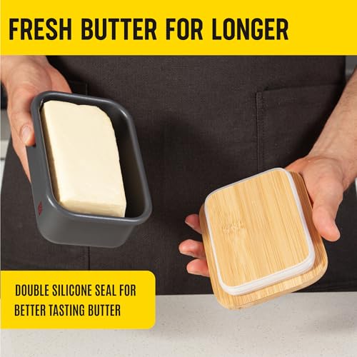 Butter Dish with Lid and Butter Curler Knife for Countertop - Unbreakable Metal Keeper Container with High-quality Double Silicone Sealing for Kitchen Farmhouse Decor