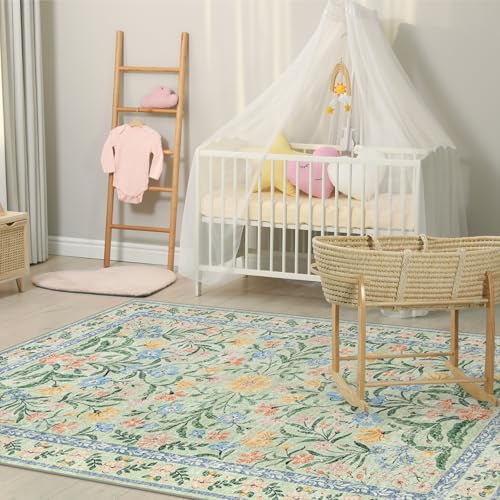 Lahome Floral 8x10 Green Living Room Rugs Large Washable Are...