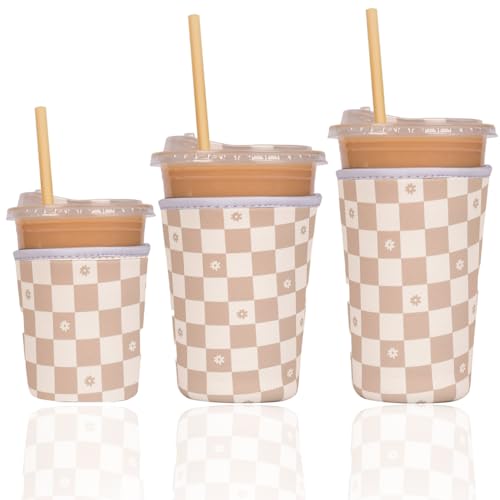 YR Reusable Neoprene Insulator Sleeve for Iced Coffee Cups 3 Pack Coffee Coolies sleeves for Iced & Hot Drinks Cold Beverage Cooler Compatible with Starbucks Dunkin Coffee and More (Little Flower)