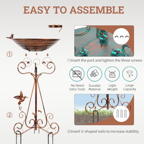 dreamysoul 12 inch Bird Bath with Feeder Copper Bowl