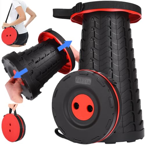 Portable Folding Stool Fishboy Retractable Telescopic Camping Stools Lightweight Sturdy Seat Adjustable Collapsible Chair Indoor Outdoor Travel Fishing Hiking BBQ Home Garden Max Load 400lbs Specifications: Weight: 2.54 lbs Height: Adjustable from 2.56\" to 17.7\" Max Load-bearing: 400 lbs Color: Red Strap length: 21.6\" Seat dimensions: 10.2\" diameter Instructions: 1. Raise it to maximum height: Grab the holes on both sides of the stool with your fingers pull it to the large height then rotate to fix it. 2. Adjust the height: Pull it to the height you want then rotate to fix it. 3. Retract: Pull a little to unlock the stool then rotate in the opposite direction. 4. You may need to try a few times to master its operation. Notes: 1. Please do not sit on the edge of the seat. Please don't tilt the stool. 2. Please pull first to unlock the stool when close it See the instructions outside the package for details Application : travel hiking museums shows picnics camping fishing ou