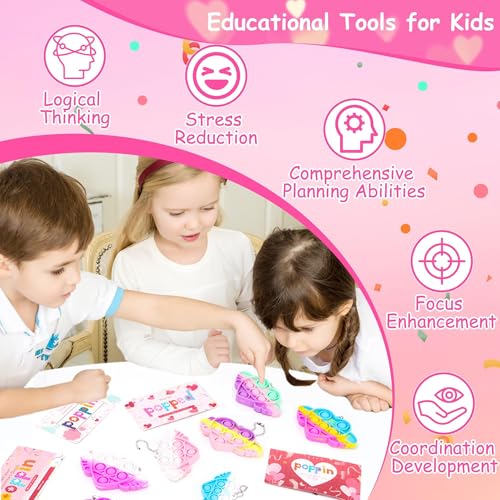 Valentines Day Gifts for Kids Heart Pop It Fidget Keychain T...