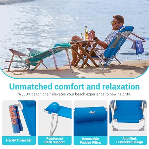 #WEJOY Anti-tip Over Folding Webbed Lawn Chair Oversized 17-in High Beach Chair for Adults Heavy Duty Aluminum High Seat Camping Chair for Elder Outdoor Garden Park Backyard(Grey/Blue) Price in USA