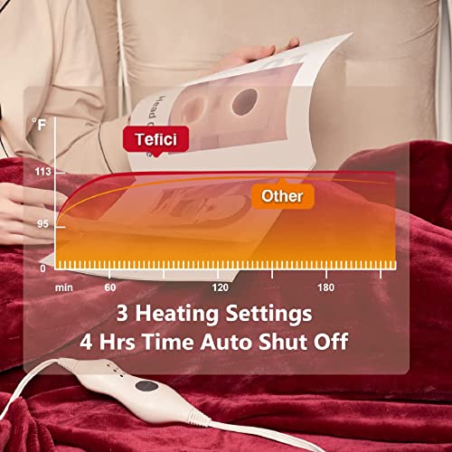 Tefici Electric Heated Blanket Throw Super Cozy Soft 2-Layer Flannel 50\" x 60\" Heated Throw with 3 Heating Levels & 4 Hours Auto Off Machine Washable ETL&FCC Certified Home Office Use Grey