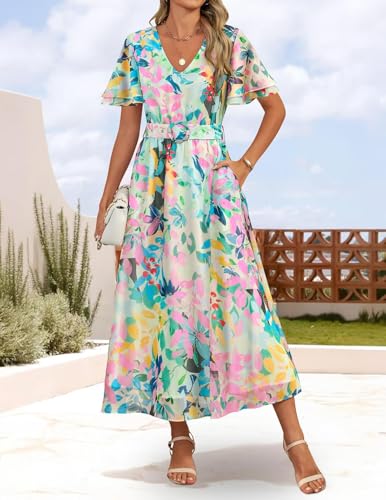 ZESICA Women's 2025 Summer Casual Floral Print Short Sleeve ...
