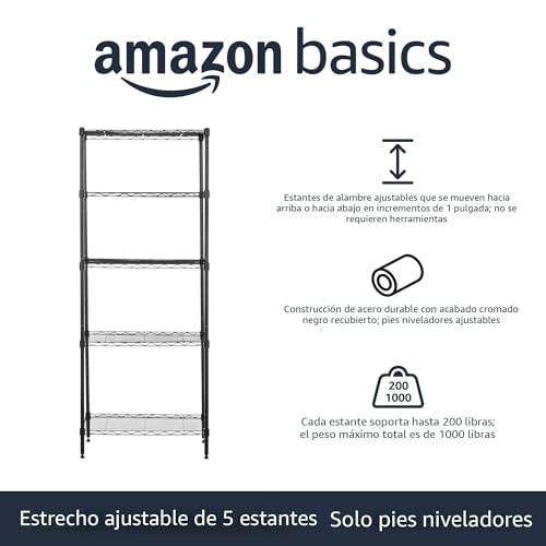 Amazon Basics 5-Shelf Multipurpose Adjustable Sturdy Steel Storage Shelving Unit Easy Assembly 13.4\" D x 23.2\"W x 60\"H Black