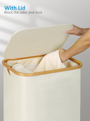 efluky Large Laundry Basket with Lid 100L Tall Bamboo Handles for Clothes and Toys Storage Freestanding Collapsible Hamper Inner Bag Bedroom Bathroom Grey Price in USA