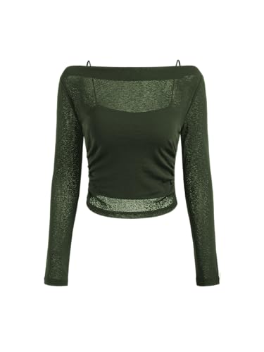 CIDER Oberteile Damen Langarmshirt Durchsichtiges Crop Top S...