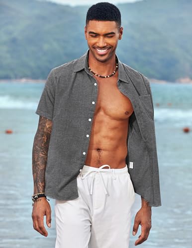 COOFANDY Men's Linen Shirt Textured Designer Western Work Re...