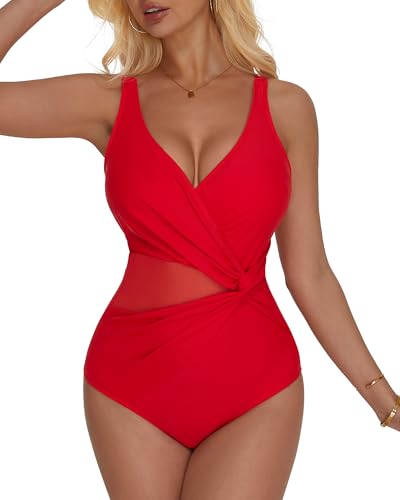 SUUKSESS Women Sexy Mesh Tummy Control One Piece Swimsuit Wr...