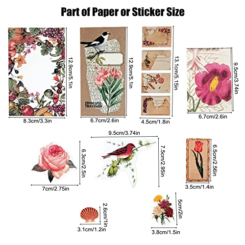 Scrapbooking Aesthetic Stickers set for creating your junk journal pages collages crafting projects wrapping cards and books. Each includes mixed sized papers stickers card stock pieces and envelopes. The package includes: Washi stickers 80 pieces 40 designs/2 of each Vintage printing papers 120 pieces 60 designs/2 of each
