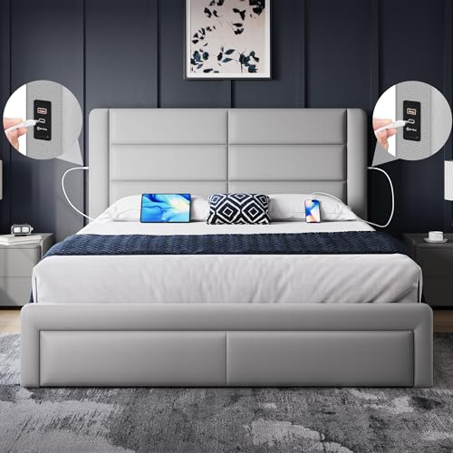 iPormis Queen Size Platform Bed Frame with Button Tufted Headboard Upholstered Bed Frame with Solid Wooden Slats 8"" Underbed Space No Box Spring Needed Noise Free Easy Assembly Light Gray Price in USA