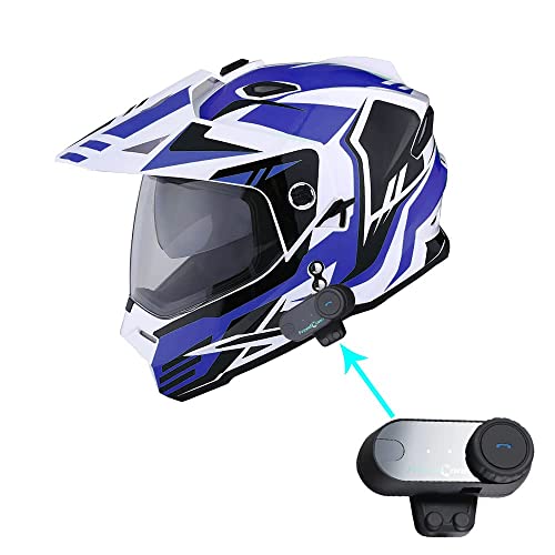 1Storm Dual Sport Motorcycle Motocross Off Road Full Face Helmet Dual Visor Storm Force Blue + Motorcycle Bluetooth Headset Price in USA
