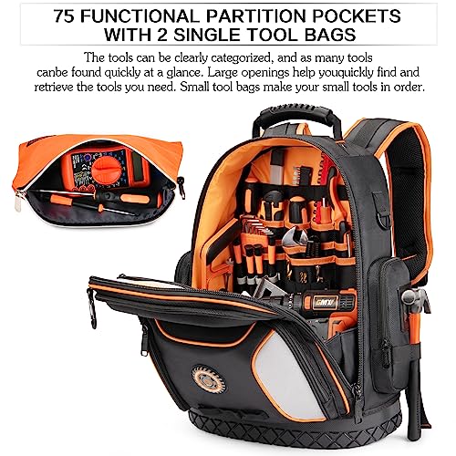 LOKASS Tool Bag Backpack with 2 Canvas Pouch Kit 75 Pockets ...