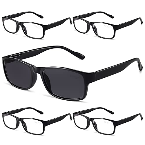 Gaoye 5-Pack Reading Glasses Blue Light Blocking Readers Sunglasses for Women Men Anti Glare Filter Eyeglasses (5-Pack Light Black/1 Sun 1.0) Price in USA