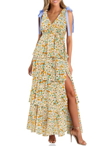 Wenrine Womens Summer Floral Maxi Dresses Sleeveless V Neck ...