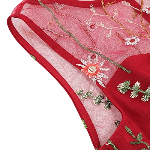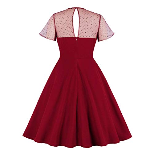 Women Mesh Sleeve Polka Dots Vintage 1950s Cocktail Swing Dress Sweetheart Illusion Short Sleeve Steampunk Gothic Dress Fared A line Casual Wedding Party Retro Rockabilly Prom Dress Burgundy-Polka 2XL Price in USA