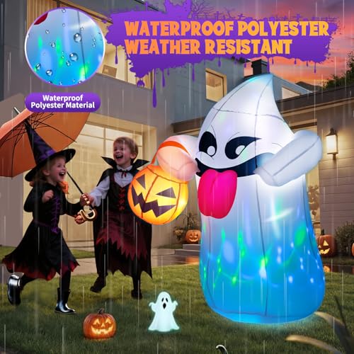 2.6 FT. Halloween Inflatable Naughty Window Ghost 2 Pack with Build-in LEDs Blow Up Inflatables for Halloween Party indoor Outdoor Yard Garden Lawn Decoration/b> PERFECT DESIGN.Be Spooked and get shocked with our 2.6 Feet Tall mischievous window crasher ghosts naughty halloween inflatables that comes in a 2 pack set with an extended cord fastened ropes screw sucker and a plug with UL certification. GREAT FUNCTION. This ghost coming out of the window features bright built-in LED lights that Light up in our spooktacular evening for the best attraction to neighbors and guests. PREMIUM QUALITY UL Certified. Our inflatable halloween decorations are safe and easy to set up. Just plug it in then everything will pop-up right away. PERFECT DECOR. These ghost inflatables are perfect for Halloween outdoor yard garden decorations Trick Or Treat event decoration Halloween night events Holiday blow-ups Haunted House Decorations and More! Our frivolous halloween light up window deco