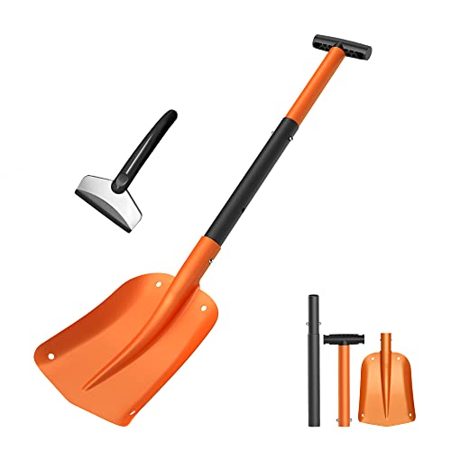 VOLTASK Snow Shovel for Car Aluminum 3-Piece Collapsible 32'' Lightweight Compact Sport Utility Shovel with Ice Scraper for Car Emergency Camping Garden Beach