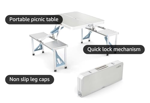 Grope Portable Camping Table with Aluminum Table Top Folding...